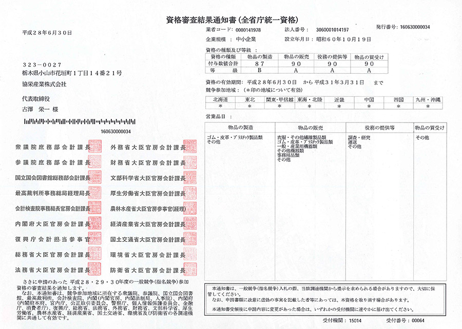 | 全省庁統一資格取得 |